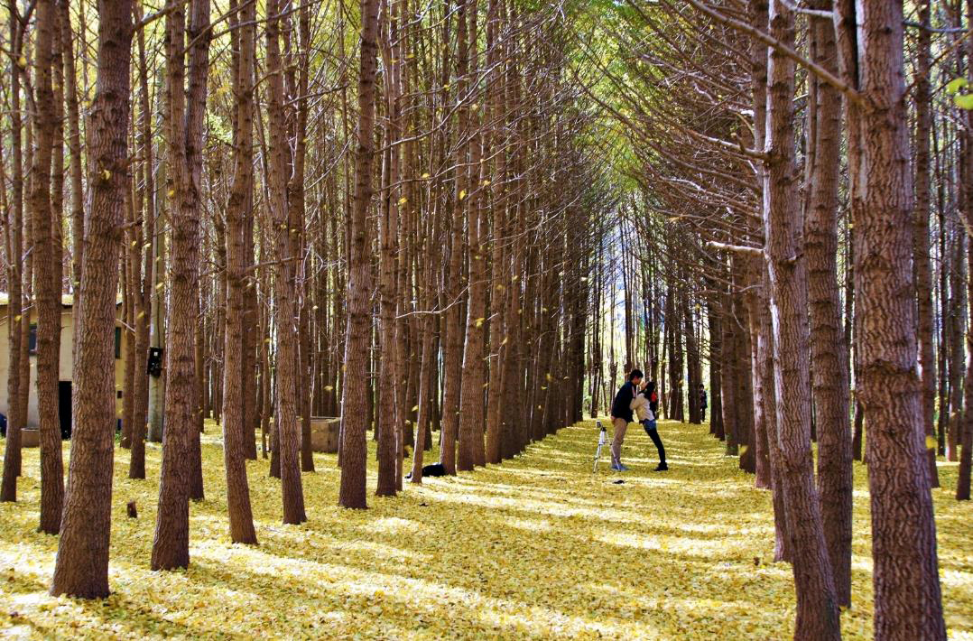 경주 서쪽 끝자락 도리마을 은행나무숲은 몇 해 전까지만 하더라도 대부분 몰랐던 장소로 몇몇만 알음알음 찾아가는 비경이었습니다. 그렇지만 도리마을 은행나무숲이 슬슬 입소문을 타면서 이제는 경주 대표 가을명소 중 한 곳이 되었습니다. 묘목 판매를 목적으로 심은 은행나무들이 숲을 이루게 되었습니다. 열 맞춰 빽빽하게 나무를 심은 덕에 자작나무처럼 위로만 쭉 벋은 늘씬한 은행나무가 이국적인 정취를 뽐냅니다. 전국의 사진작가들이 매년 이곳을 찾고, 웨딩촬영성지가 되었습니다. 최근에는 은행나무 물들 때면 마을 주민들이 직접 먹거리 장터, 특산물 장터를 운영해 즐길 거리를 더하고 있습니다.
