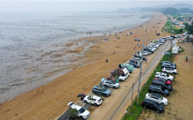 갯벌 규모가 1천8백만 평으로, 물이 빠지면 직선 4km까지 갯벌로 변해 밀물일 때는 해수욕을 즐길 수 있고 썰물일 때는 갯벌 체험을 할 수 있습니다.