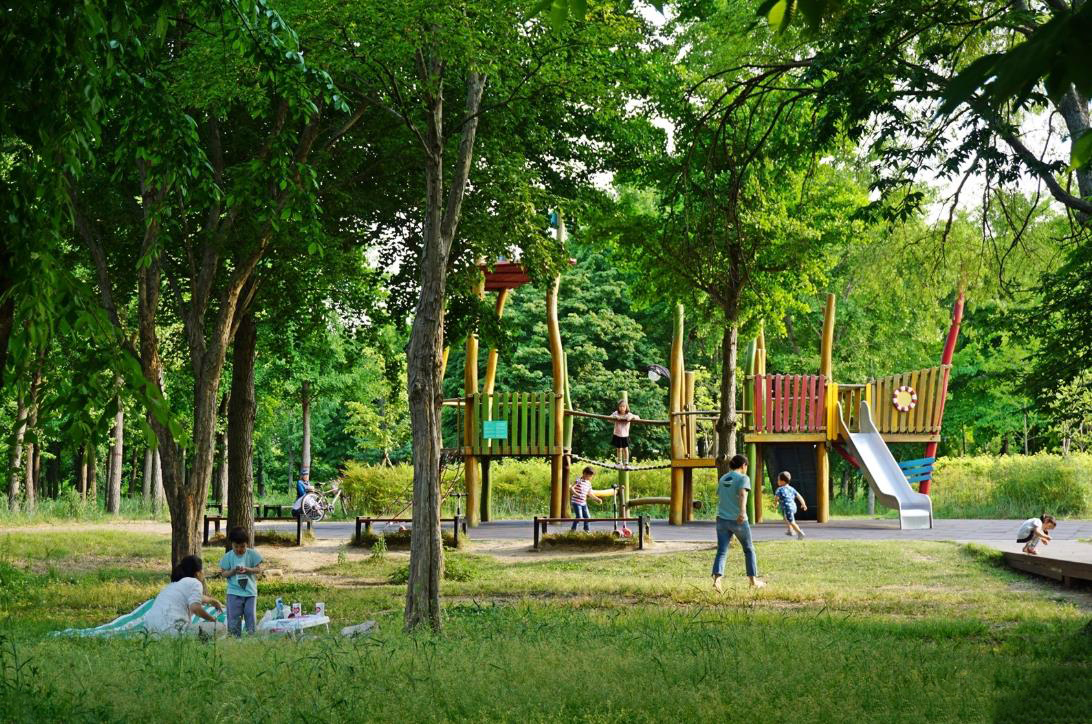 도로 통일로를 기준으로 동쪽 영역과 서쪽 영역으로 나뉘는데 동쪽 영역에는 산목련나무길, 침엽수길, 야생화단지, 메타세쿼이아길이 조성되어 있어 인기가 많은 곳입니다.