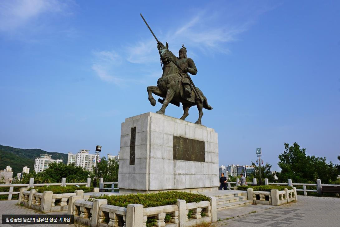 황성공원 솔숲은 도심 속 힐링 공간으로 경주시민과 관광객의 사랑을 지속적으로 받고 있는 곳입니다. 삼릉에 뒤지지 않는 멋스러운 소나무와 수 백 년 수령을 자랑하는 고목이 어우러져 울창한 숲을 이룬 곳으로 여름이면 솔숲 산책로에 맥문동 군락이 조성되어 수려한 풍광을 더해주고, 가을이면 느티나무, 상수리나무, 떡갈나무 고목이 아늑하게 물듭니다. 황성공원 중간에 솟아오른 동산에 자리한 김유신 장군 기마상도 볼거리 중 하나입니다.